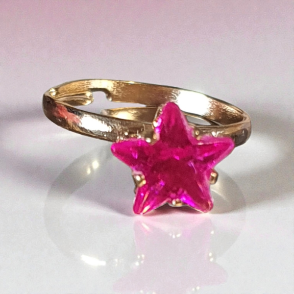 Cette adorable bague enfant fantaisie en forme d’étoile est sublimée par un strass en plastique rose fuchsia, éclatant et scintillant ✨