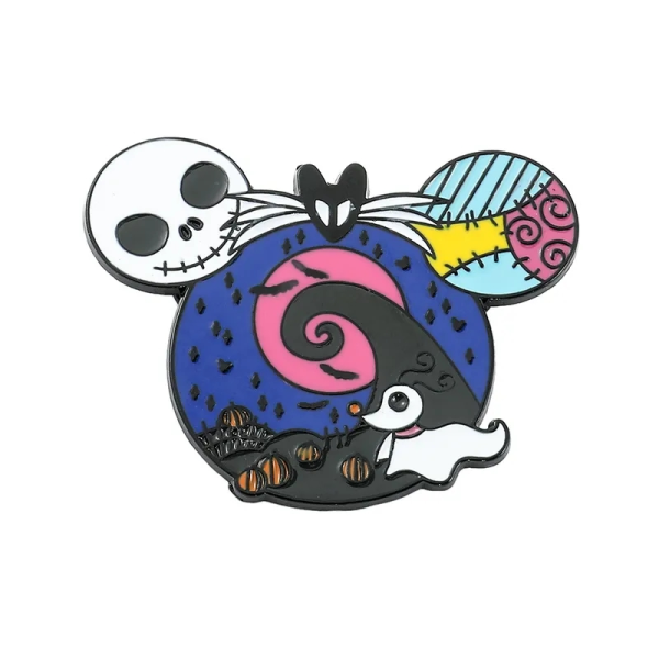 Ce pin’s officiel inspiré de l’univers Disney – L’Étrange Noël de Monsieur Jack représente Jack Skellington accompagné d’une lune spiralée iconique et d’éléments rappelant la ville d’Halloween. Son design soigné, ses couleurs contrastées et sa forme originale en font une pièce forte et collector.